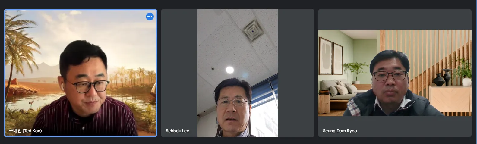 IT에 앞서가는 구태언 변호사가 Google Team이라는 툴로 온라인 미팅을 리드해주었습니다.